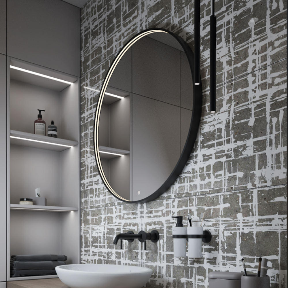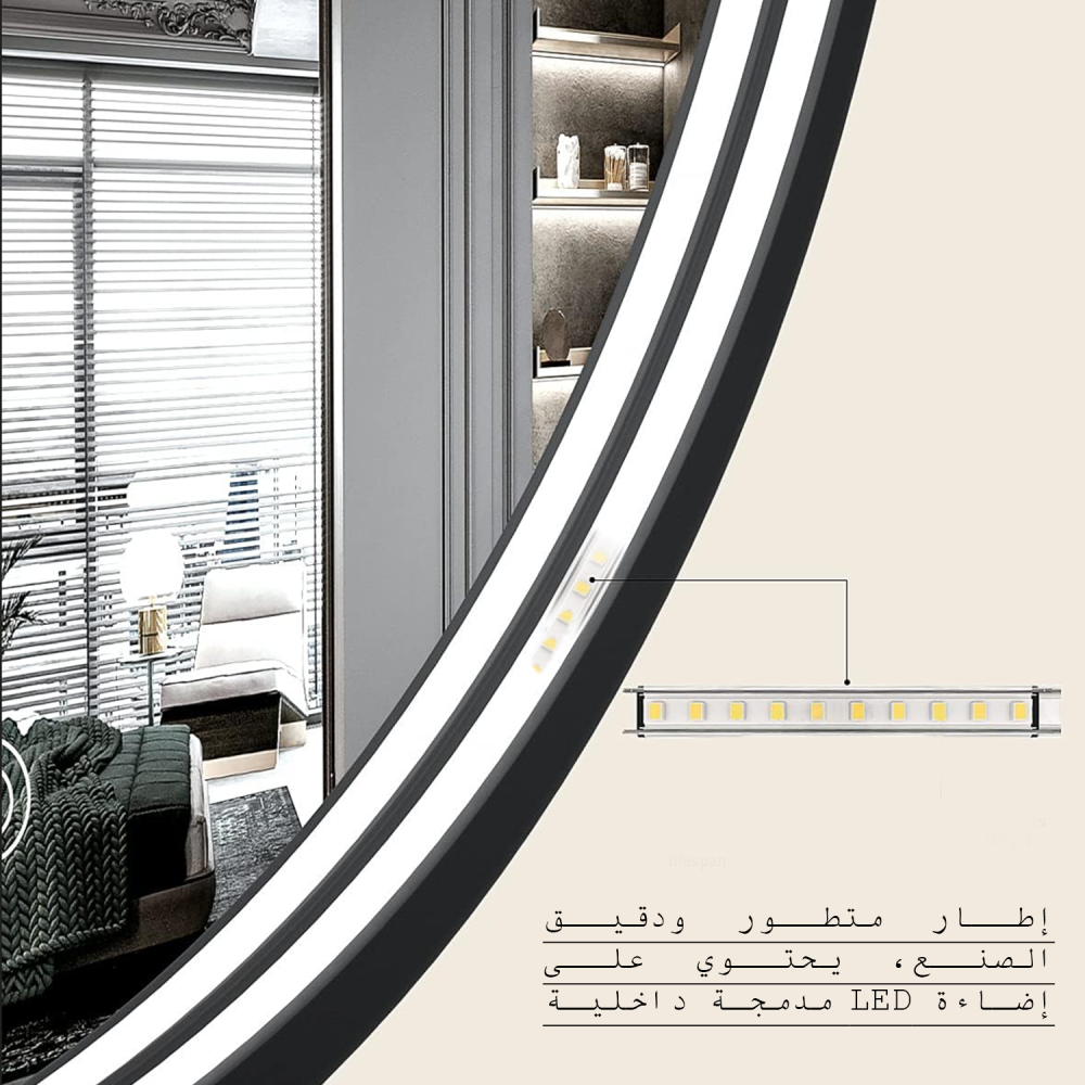 مرآة LED 70×70 سم ، بتصميم أنيق وبسيط يناسب جميع الديكورات، مما يجعلها مثالية للحمام، مداخل البيوت، وغرف النوم، وتضيف لمسة فخامة لأي مساحة.