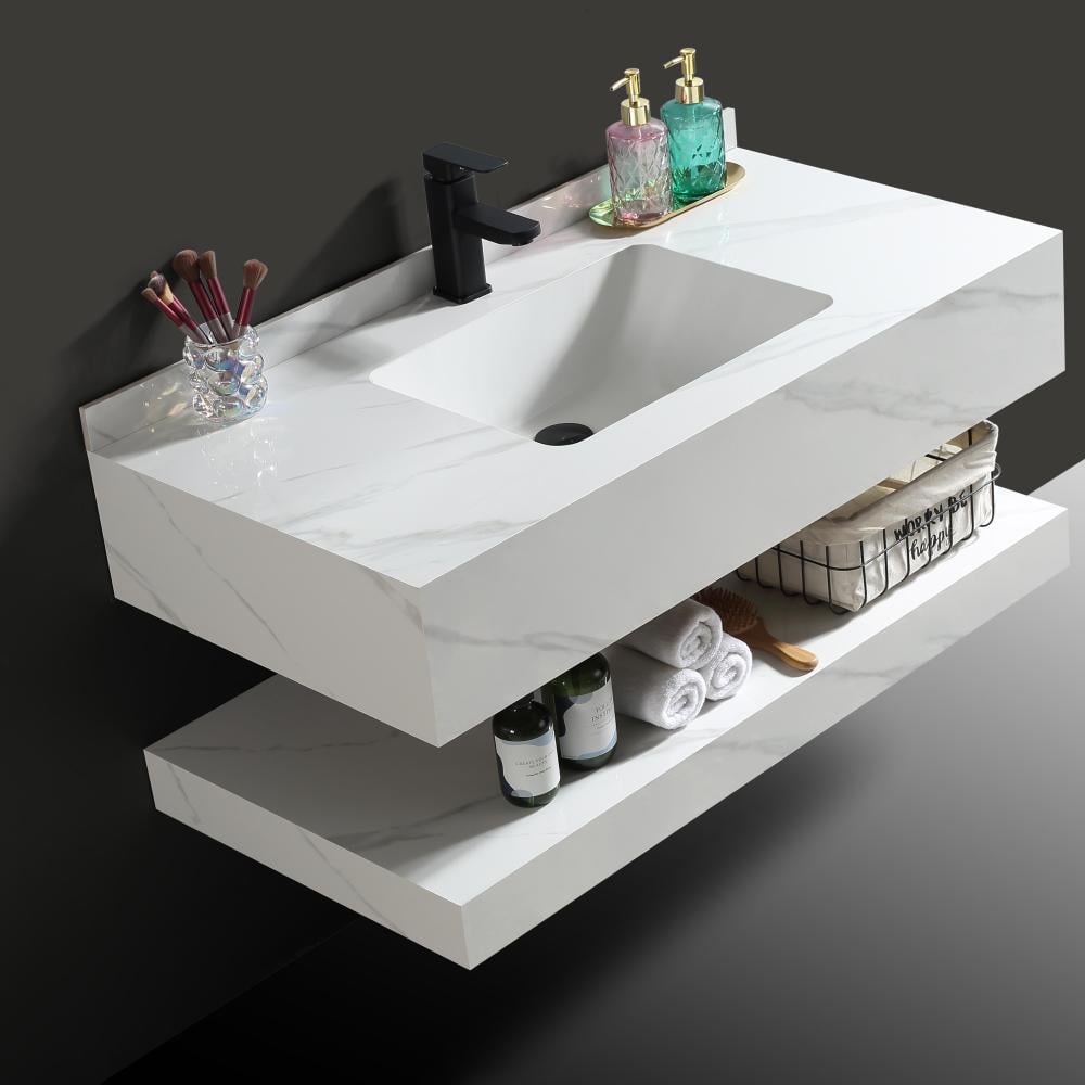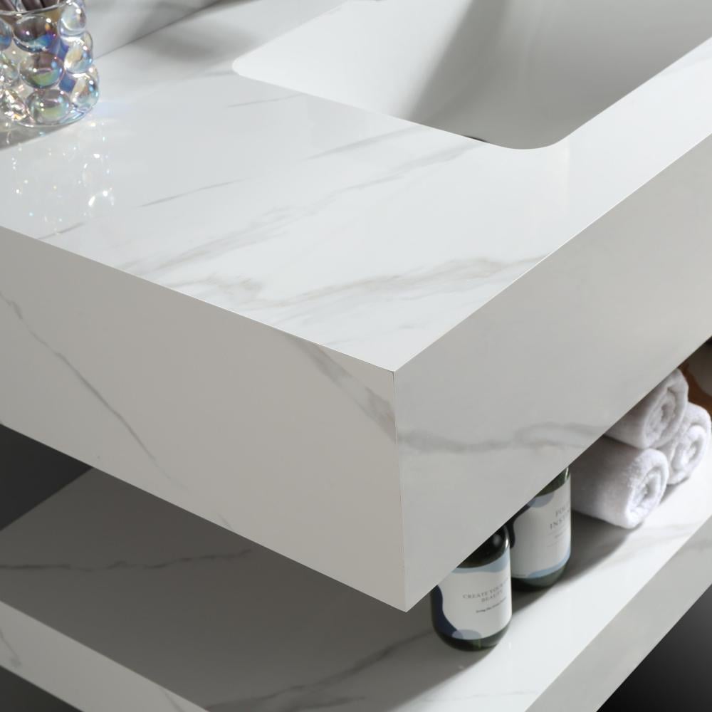 مغسلة ديكور 80 سم رخام صناعي (حجر) ليزر - لون ابيض عرق رمادي