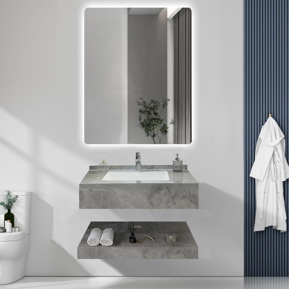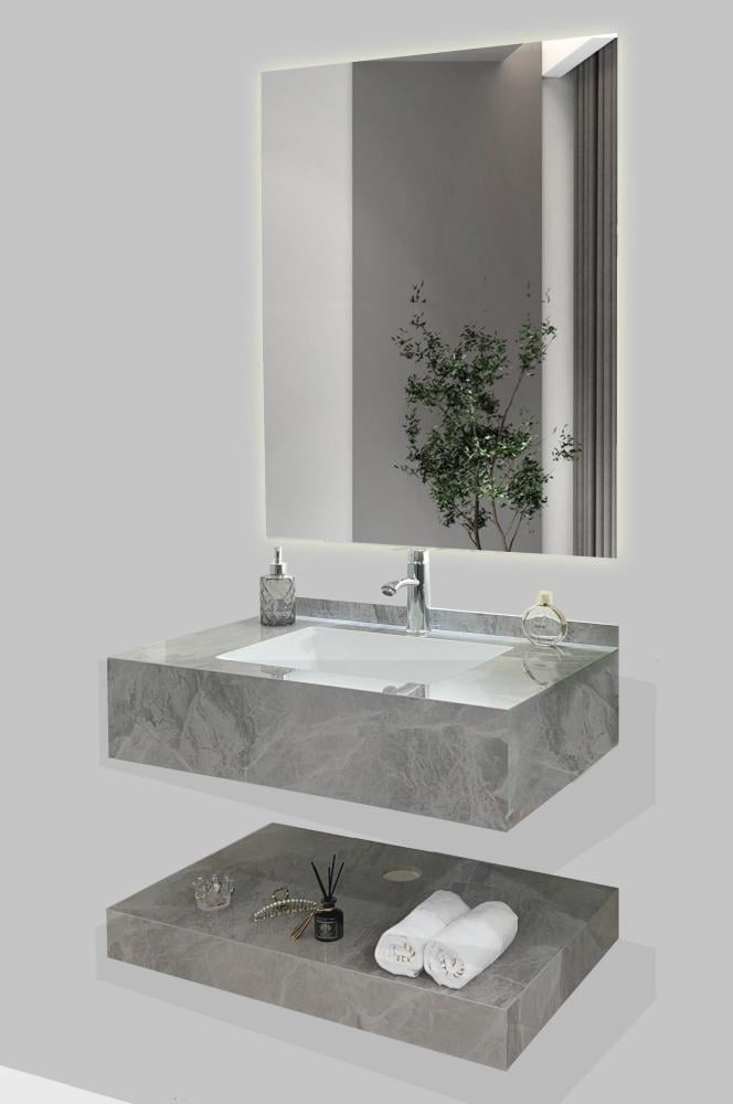 مغسلة بورسلان رمادي 60 سم مع مرايا ليد