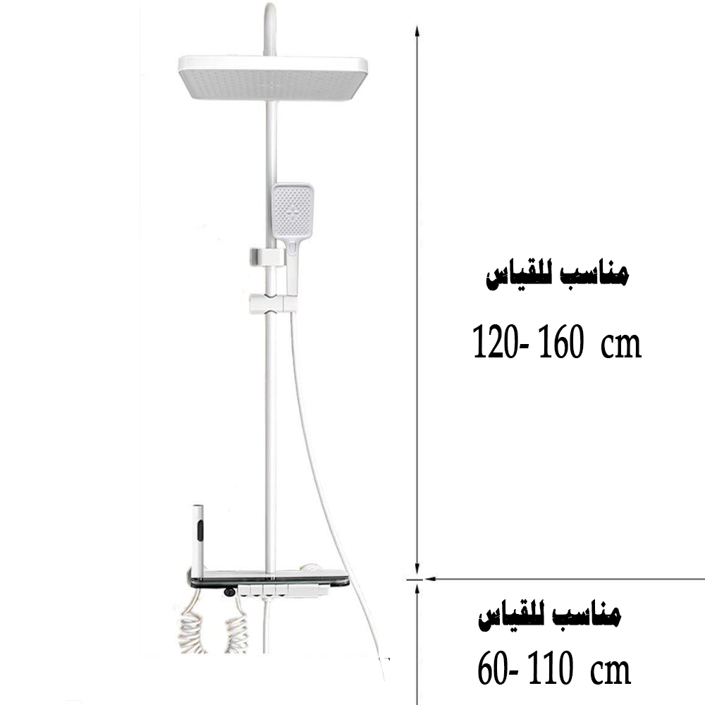 الارتفاع: 120 الى 160 سم من الخلاط الي طاسة الدش.