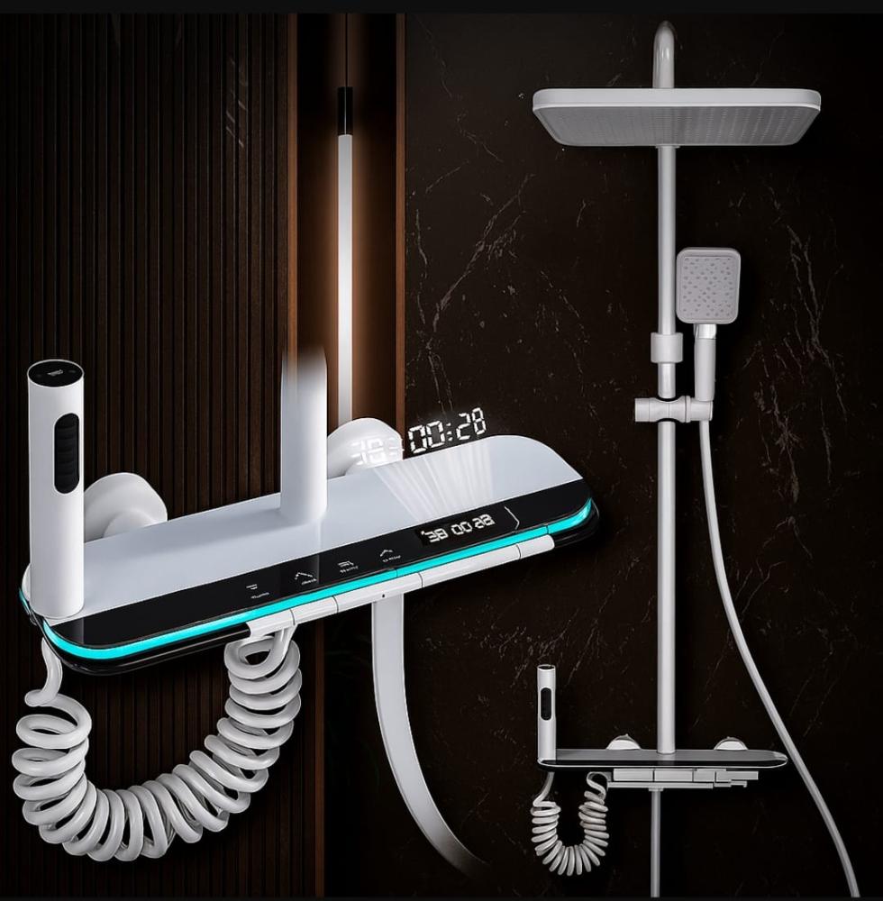 محتويات المنتج: محتوي المنتج: دش مطري - خلاط شاور عريض - هاند شاور - شطاف -صباب سفلي -شاشة دجيتال .