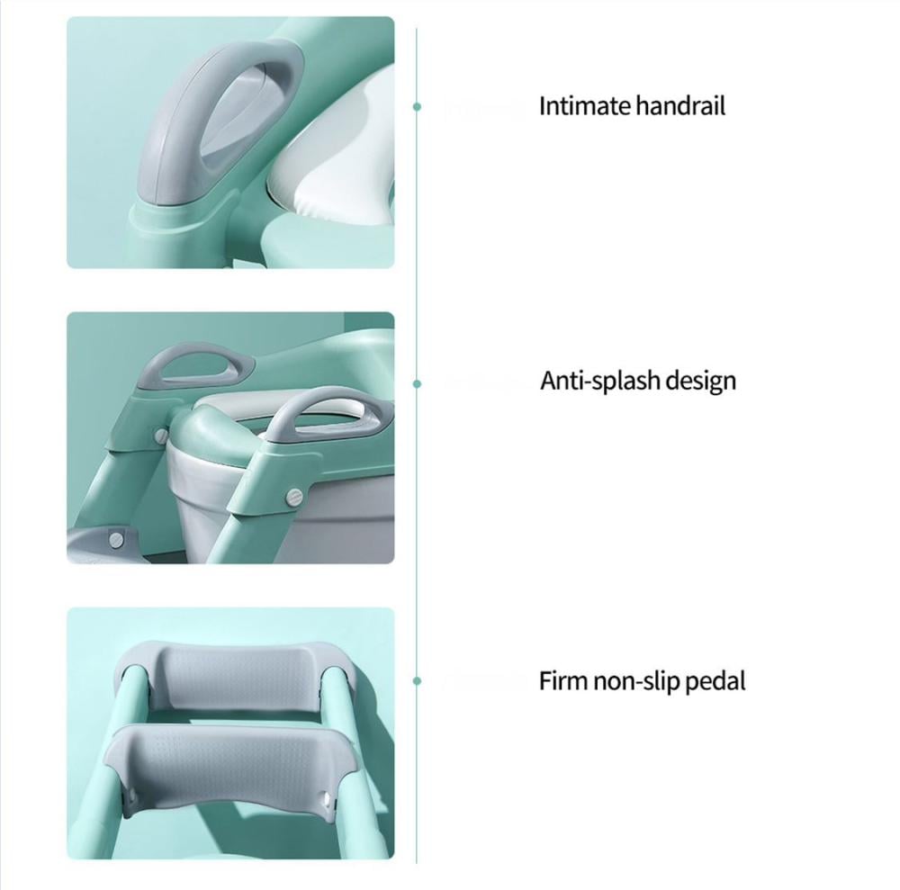 مزود بأربع وسائد مضادة للانزلاق في أسفل المقعد لضمان الثبات على المرحاض المخصص للبالغين، مما يعزز سلامة الأطفال أثناء الاستخدام.