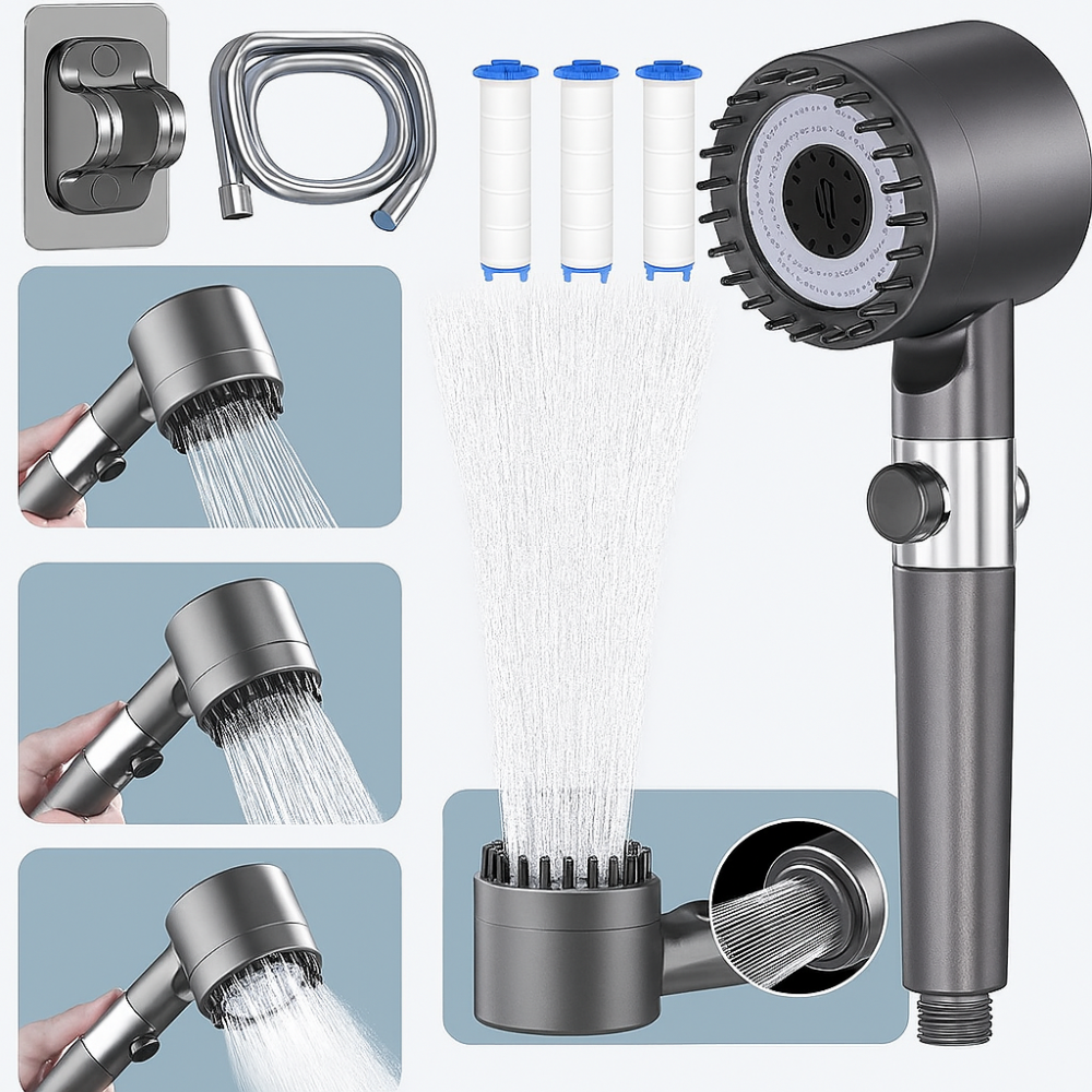 رأس دش عالي الضغط متعدد الوظائف مع نظام تدليك وترشيح المياه.
