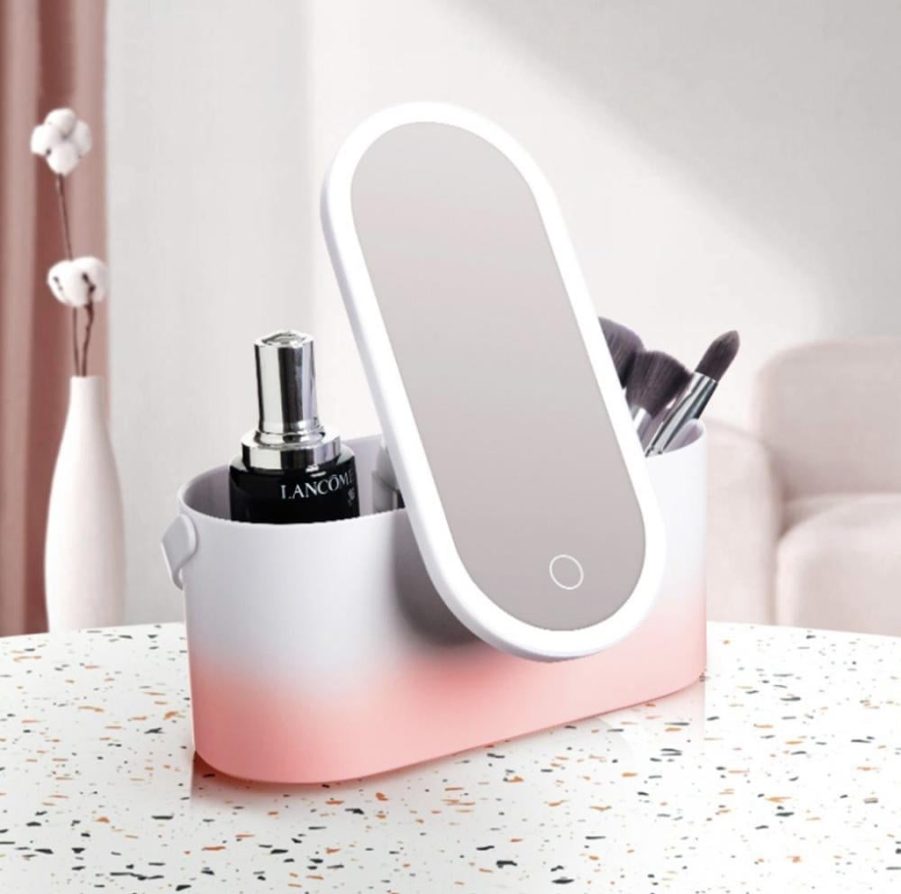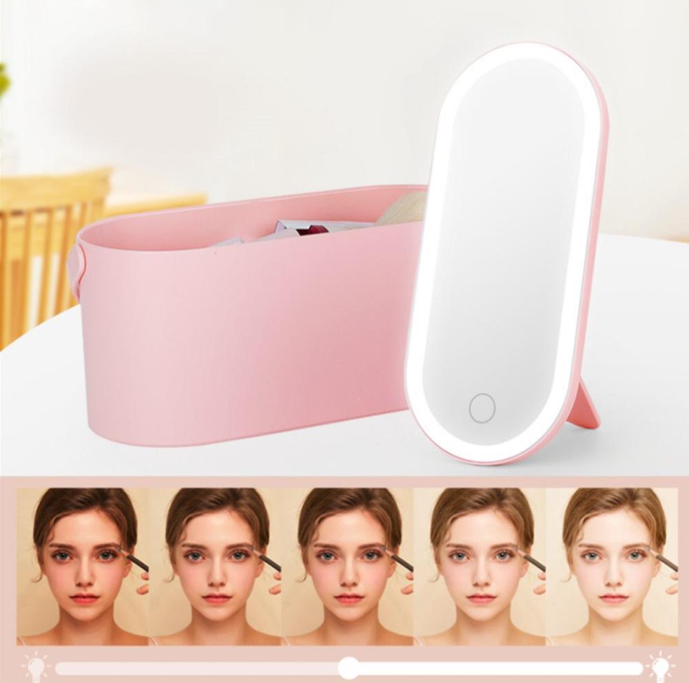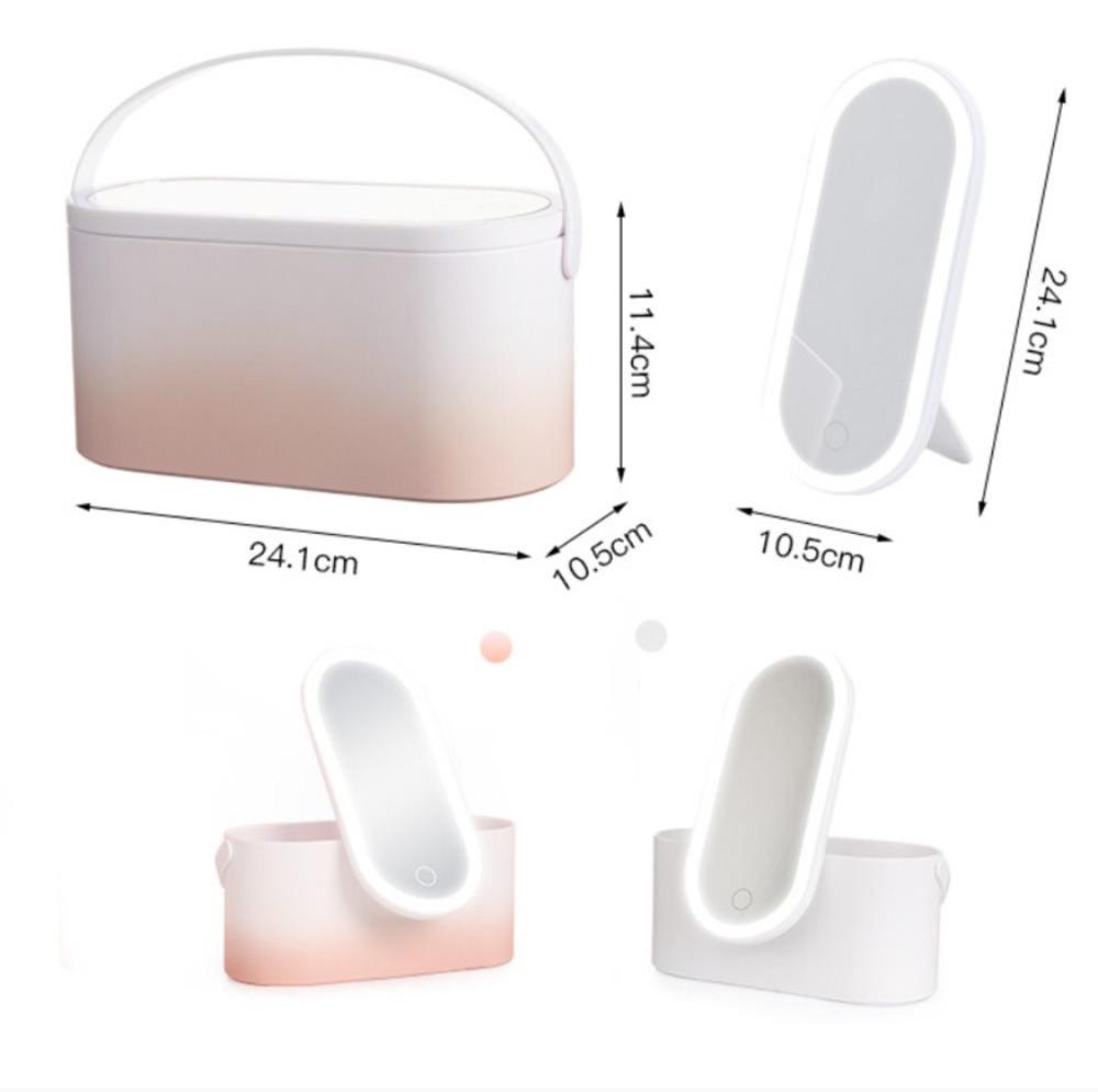 هذا المنتج عبارة عن صندوق تخزين مستحضرات التجميل مزود بمرآة LED مضيئة
